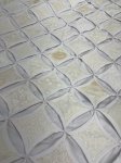 Cathedral Windows - cream tone on tone 100" x 118", 100% cotton fabrics, 36 yards in backing alone! Top is all hand stitched.